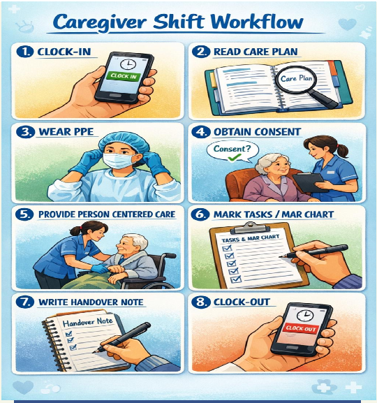 Maintaining compliance is everyone’s responsibility. Please ensure you read care plans carefully, record and mark all tasks complete accurate daily notes, update MAR charts correctly, clocking and out on time, and report any concerns to the office without delay.